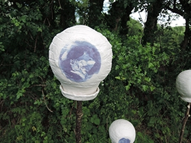 Installation céramique et cyanotypes à partir du projet Survivances.
